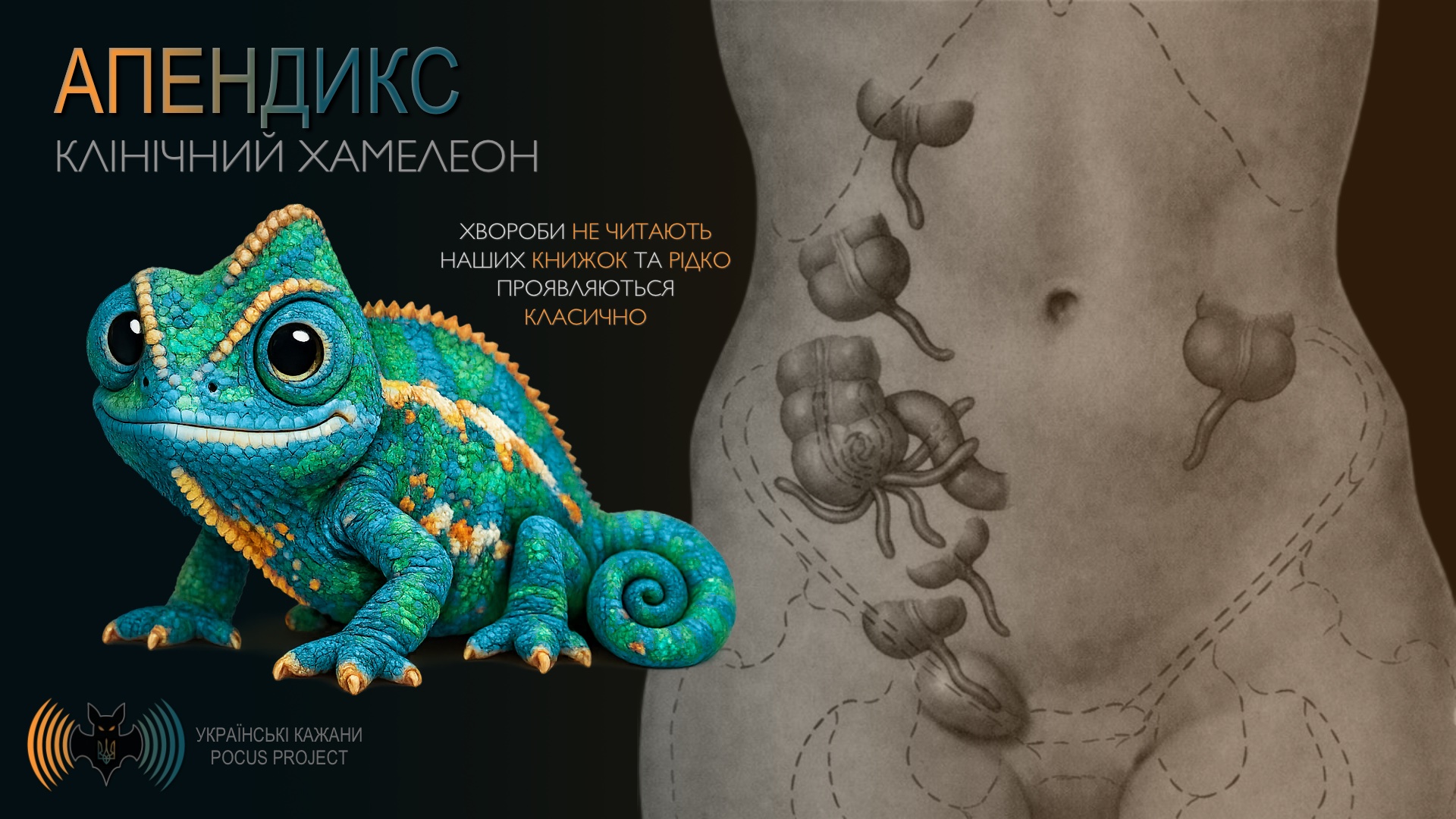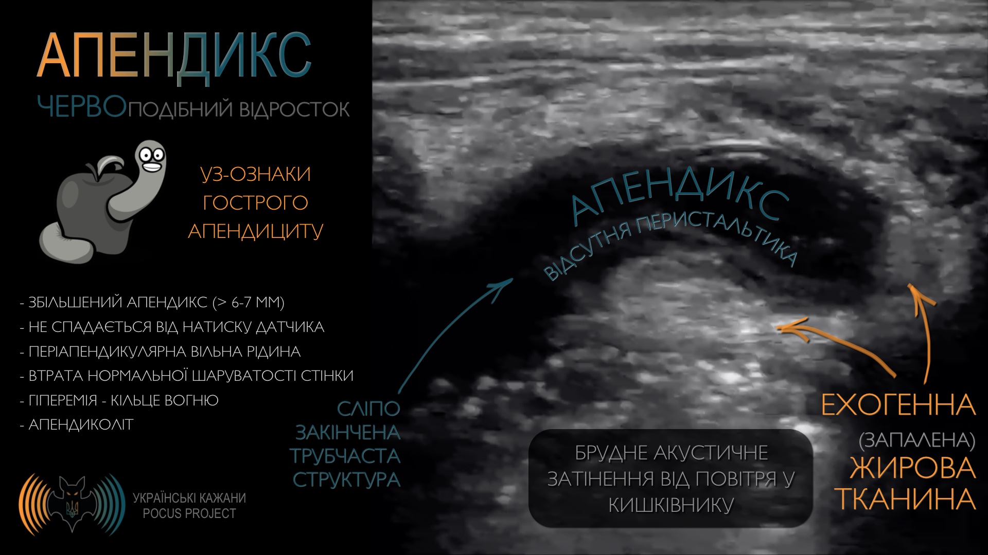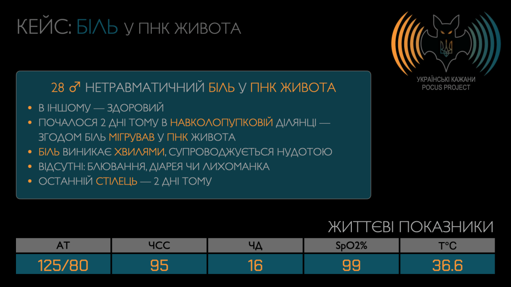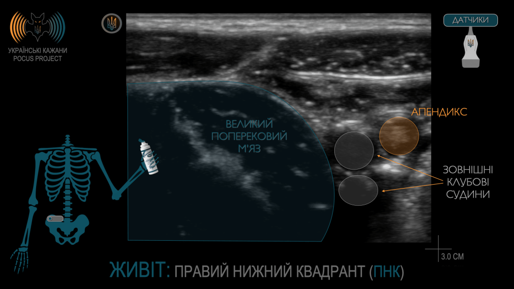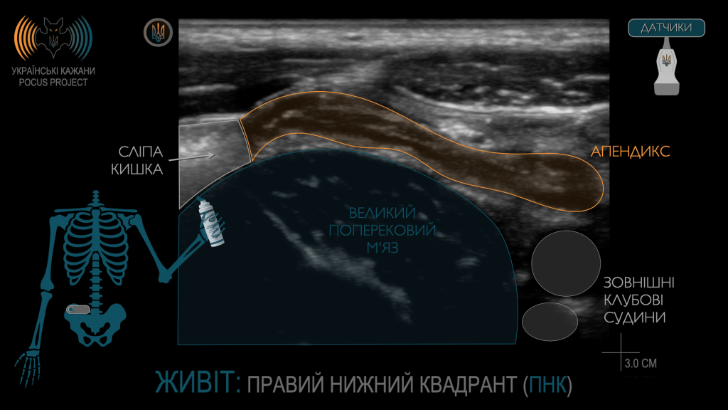 Що стосується гострого апендициту, справа в тому, що наш черв’ячок [лат. appendix vermiformis] не читає медичних книжок і переважно не проявляється типово. Він є справжнім клінічним хамелеончиком, якому часто вдається нас обдурити. Тобто завжди варто взяти в руку датчик і хоча б оцінити рівень імовірності діагнозу гострого апендициту.