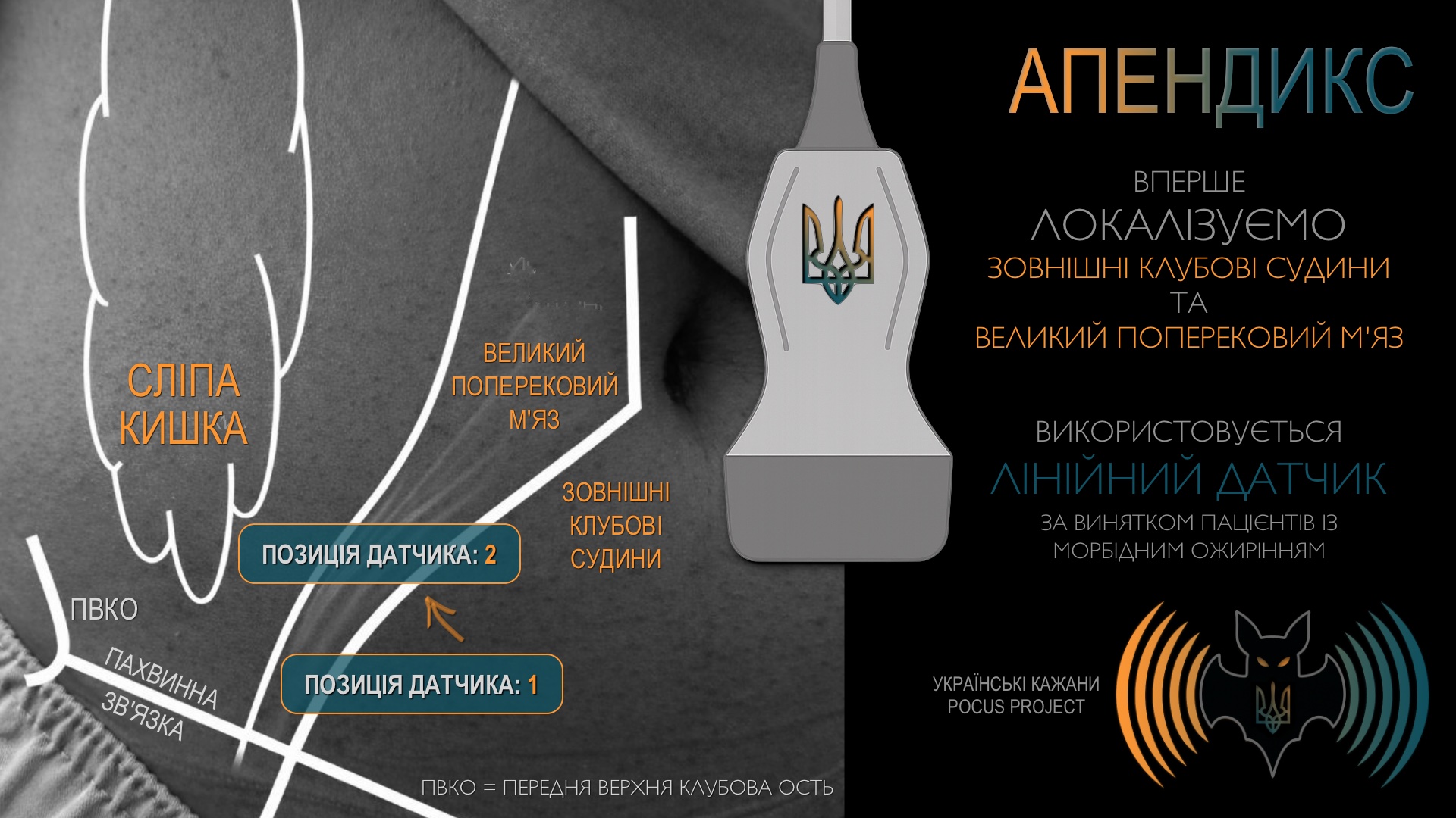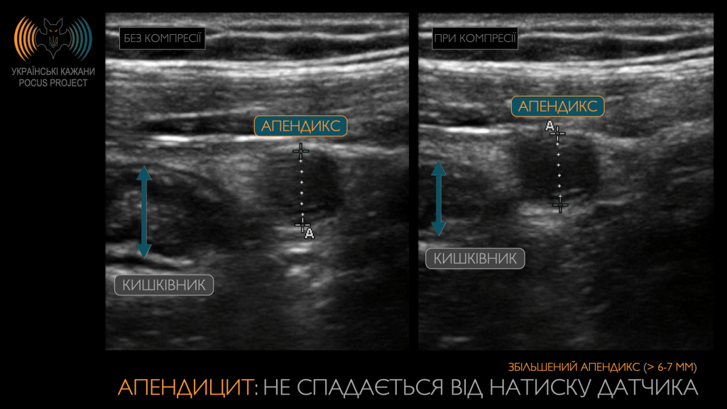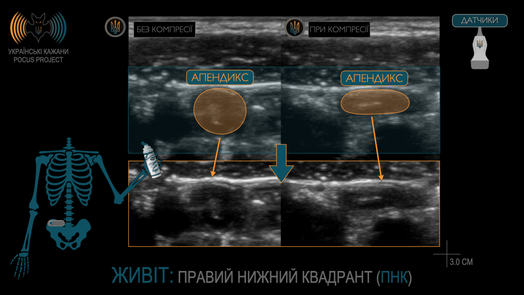Завдяки POCUS діагноз гострого апендициту встановлюється значно швидше, а оперативне втручання стає більш цілеспрямованим, коли детальна локалізація апендикса є відомою.
