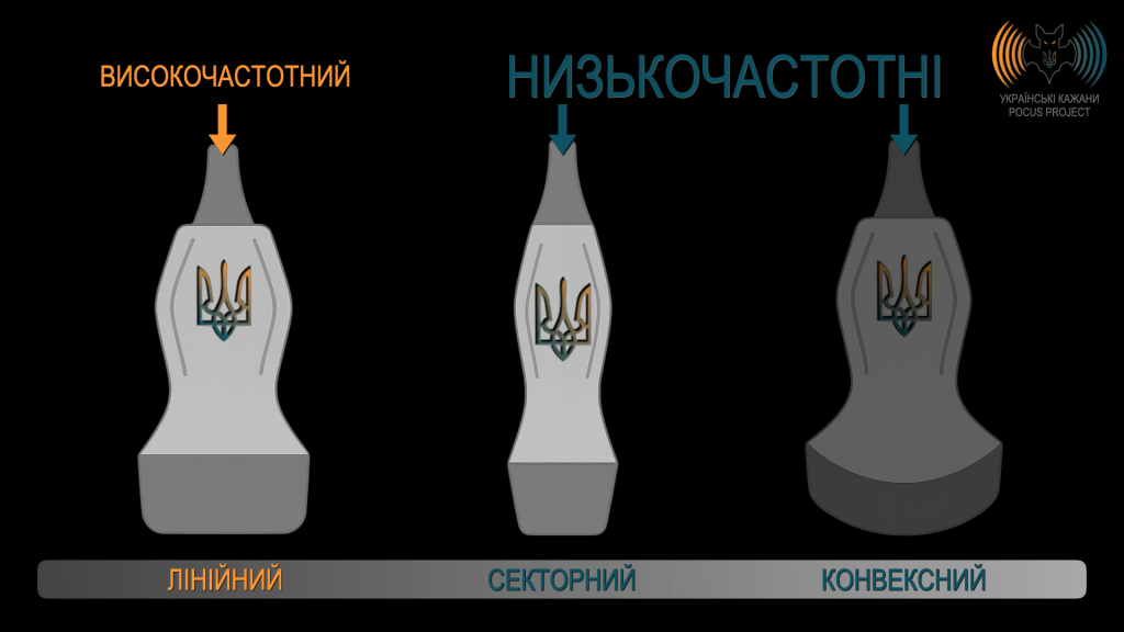 - НИЗЬКОЧАСТОТНІ — для глибокої візуалізації (секторний, конвексний).