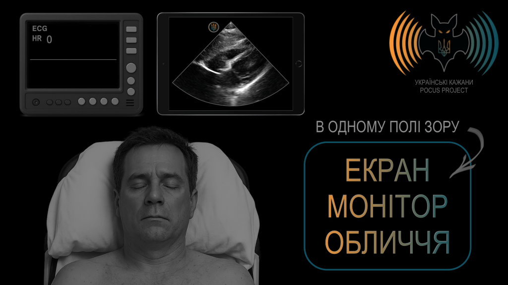 Правильні звички в клінічній медицині рятують життя й заощаджують час. Те саме стосується POCUS, особливо під час роботи з критично хворими чи пораненими пацієнтами. Саме тому варто відпрацьовувати організацію робочого простору так, щоб в одному полі зору одночасно були обличчя пацієнта, екран УЗ-апарата та монітор життєвих показників. Це дозволяє корелювати ультразвукові знахідки з гемодинамічними параметрами та загальним станом пацієнта, зокрема у випадках його швидкого погіршення.